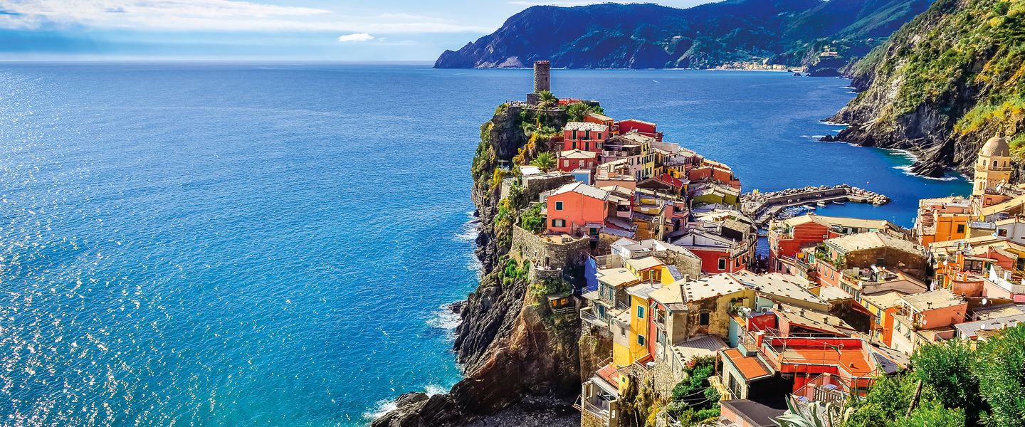 Die unberührte Landschaft der Cinque Terre ist von seltener Schönheit. Fünf malerische, verträumte Dörfer an der ligurischen Küste, farbige Häuser an steilen Hängen, kleine Plätze mit bunten Booten, Treppenwege und Torbögen - eine der eindrucksvollsten Landstriche der Welt.