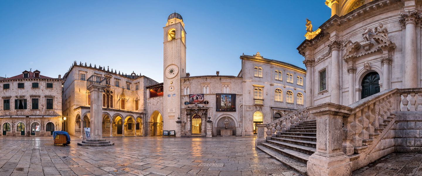 Im Rahmen einer Stadtführung erkunden Sie Dubrovnik, die „Perle der Adria“. Bei einem Rundgang durch diese UNESCO-Weltkulturerbestadt erleben Sie die faszinierende Verbindung von Vergangenheit und Gegenwart. Im Hafen herrscht lebhaftes Treiben, während es hinter den imposanten Festungsmauern ruhiger zugeht. Der Spaziergang führt Sie zu den wichtigsten Sehenswürdigkeiten, darunter die Stadtmauer, der Stradun und der Sponza-Palast. Der Nachmittag steht Ihnen zur freien Verfügung. Nutzen Sie die Zeit für einen Spaziergang auf der Stadtmauer, um die beeindruckende Aussicht auf die Altstadt und das Meer zu genießen.