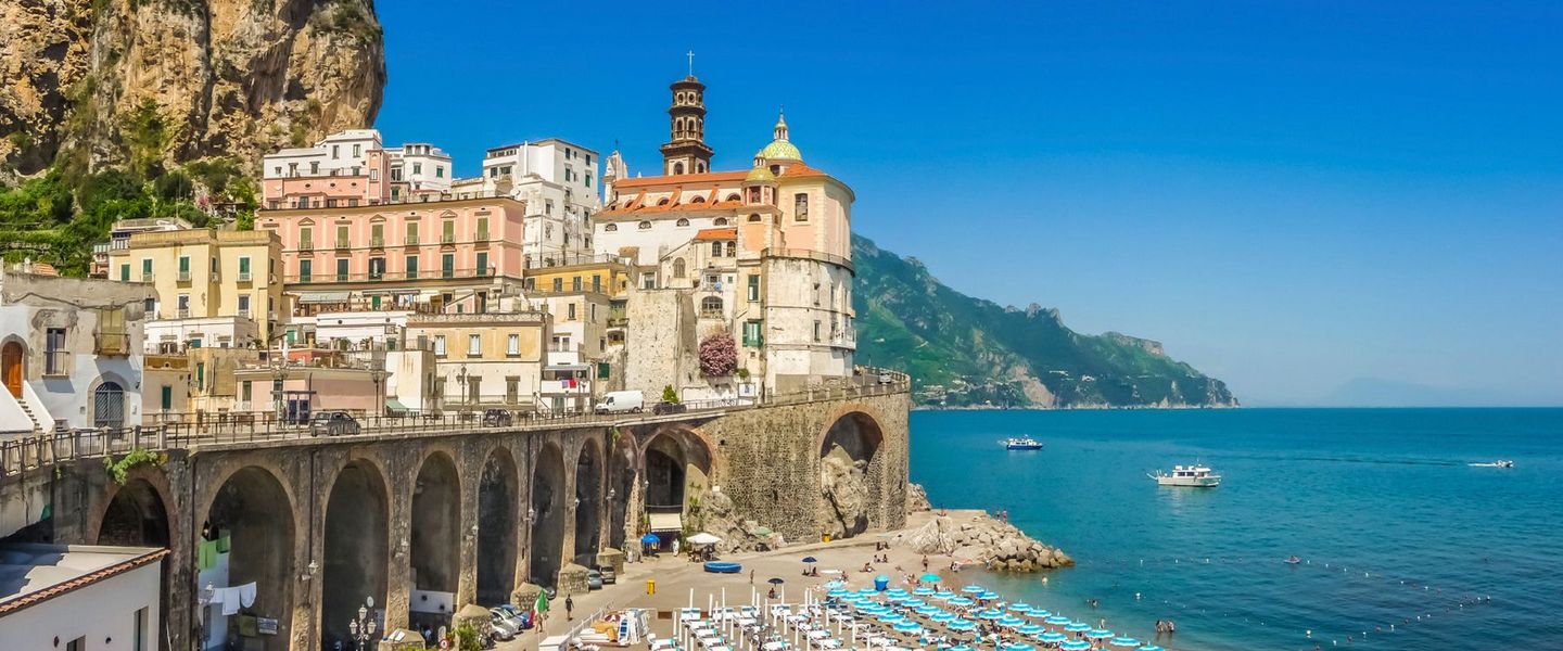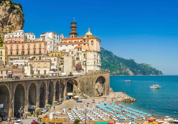 Die Amalfiküste ist eines der spektakulärsten Reiseziele Italiens und bekannt für ihre atemberaubenden Landschaften, malerischen Dörfer und das glitzernde blaue Wasser des Tyrrhenischen Meeres. Diese UNESCO-Weltkulturerbe-Region erstreckt sich über etwa 50 Kilometer entlang der Südküste der Halbinsel Sorrent und bietet eine Vielzahl von charmanten Städten wie Positano, Amalfi und Ravello, die alle mit ihren bunten Häusern, engen Gassen und beeindruckenden Ausblicken begeistern. Die Amalfiküste ist berühmt für ihre köstliche Küche, insbesondere für frische Meeresfrüchte, Zitronenprodukte und die traditionelle Pasta "Linguine alle Vongole". Die Region hat eine reiche Geschichte, die bis in die Antike zurückreicht, und war einst ein bedeutendes Handelszentrum. Ein Besuch an der Amalfiküste ist eine hervorragende Möglichkeit, die Schönheit der Natur zu genießen, die italienische Kultur zu erleben und sich in den zahlreichen Restaurants und Cafés verwöhnen zu lassen. Die Kombination aus atemberaubenden Ausblicken, kulturellem Erbe und der Möglichkeit, die italienische Lebensart zu genießen, macht die Amalfiküste zu einem unverzichtbaren Ziel für Reisende.