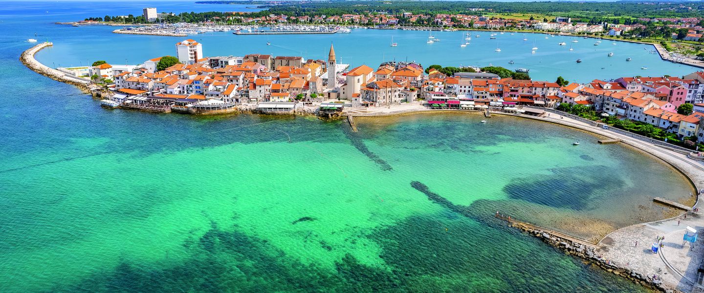 Umag bietet eine Vielzahl von Sehenswürdigkeiten, die sowohl historisch als auch kulturell von Bedeutung sind. Die Altstadt von Umag ist ein beliebter Ort für Spaziergänge und bietet zahlreiche historische Gebäude, darunter die Stadtmauer und der Uhrturm, die aus dem 16. Jahrhundert stammen. Die Kirche des Heiligen Rocco, die im 18. Jahrhundert erbaut wurde, ist ein weiteres Highlight und bekannt für ihre schöne Innenausstattung. Der Hafen von Umag ist ein zentraler Anziehungspunkt und bietet die Möglichkeit, Boote zu beobachten und frische Meeresfrüchte zu genießen. Die Umgebung ist ideal für Wassersportarten wie Segeln, Tauchen und Windsurfen. Umag ist auch ein beliebter Ausgangspunkt für Ausflüge in die umliegenden Naturschutzgebiete und Weingüter, die die natürliche Schönheit und die kulinarischen Schätze der Region Istrien präsentieren. Diese Sehenswürdigkeiten sind nicht nur architektonische Meisterwerke, sondern auch bedeutende Zeugen der reichen Geschichte und Kultur Umags.