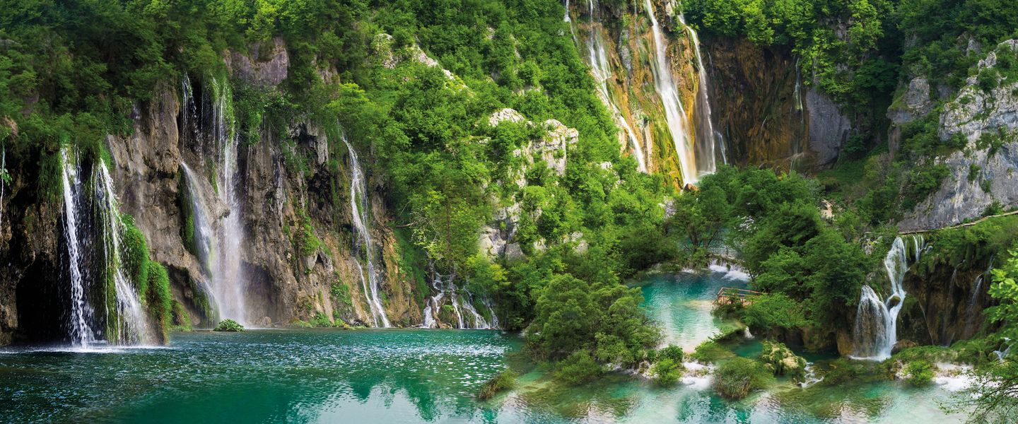 Der Nationalpark Plitvicer Seen ist für seine kaskadenförmig angeordneten Seen weltbekannt. Inmitten einer einzigartigen Naturlandschaft aus dunklen Wäldern und glasklarem Wasser befindet sich diese traumhafte Welt aus türkisen Seen und unzähligen Wasserfällen.