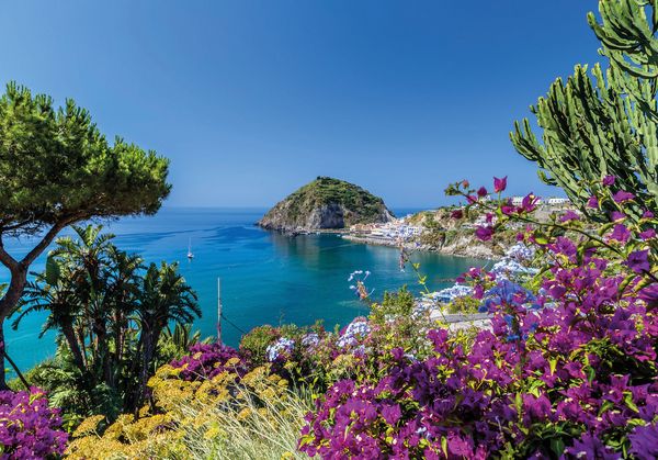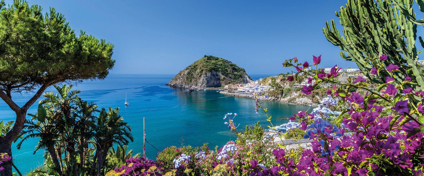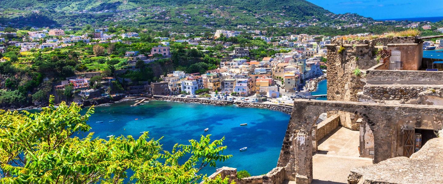 Ischia liegt im Tyrrhenischen Meer, etwa 30 Kilometer von Neapel entfernt und ist die größte der Phlegräischen Inseln. Geografisch ist die Insel von steilen Küsten, sanften Hügeln und üppiger Vegetation geprägt, die eine beeindruckende Kulisse für die malerischen Strände und Dörfer bieten. Die Anreise nach Ischia erfolgt in der Regel mit der Fähre oder dem Tragflächenboot von Neapel oder Pozzuoli, wobei die Überfahrt etwa 1 bis 1,5 Stunden dauert. Die zentrale Lage von Ischia macht sie zu einem idealen Ziel für Tagesausflüge von Neapel oder als Teil einer Erkundungstour durch die Region Kampanien, die auch die Amalfiküste und die Insel Procida umfasst. Die Kombination aus natürlicher Schönheit, kulturellem Erbe und der Möglichkeit, die italienische Lebensart zu genießen, macht Ischia zu einem unverzichtbaren Ziel für Reisende, die die Vielfalt und den Charme dieser einzigartigen Insel entdecken möchten.