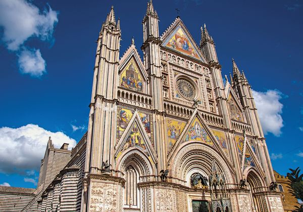 Orvieto bietet eine Vielzahl von Sehenswürdigkeiten, die sowohl historisch als auch kulturell von Bedeutung sind. Die Duomo di Orvieto ist das herausragende Wahrzeichen der Stadt. Die Kathedrale beeindruckt mit ihrer prächtigen Fassade, die mit bunten Mosaiken und Skulpturen geschmückt ist. Im Inneren der Kathedrale befinden sich bedeutende Kunstwerke, darunter Fresken von Luca Signorelli, die biblische Szenen darstellen.
