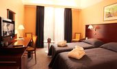 Die Zimmer sind mit DU/WC, Telefon, SAT-TV, Minibar und Klimaanlage ausgestattet.