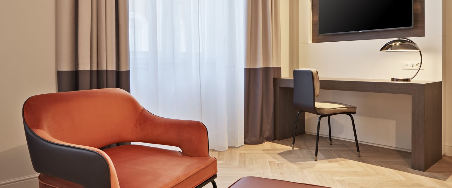 Das DoubleTree by Hilton Trieste ist ein elegantes 4-Sterne-Hotel, das sich im Zentrum von Triest, Italien, befindet. Es besticht durch zahlreiche Originalfresken und Marmordekor. Genießen Sie einen warmen DoubleTree Cookie zur Begrüßung.